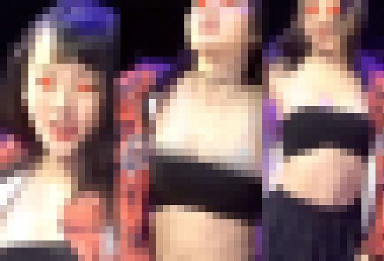 オレンジの上着の中に黒い衣装の縦幅が特に短い子、注目を浴びる攻めた演出。