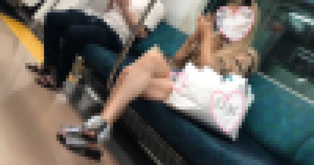 タイトル : 【電車対面】太ももと足のネイルがエロいショップ店員【ショートパンツ】